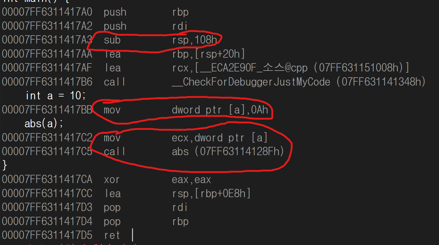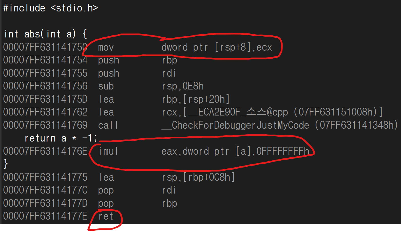 rsp+8은 abs함수의 a라고 생각 하면 된다