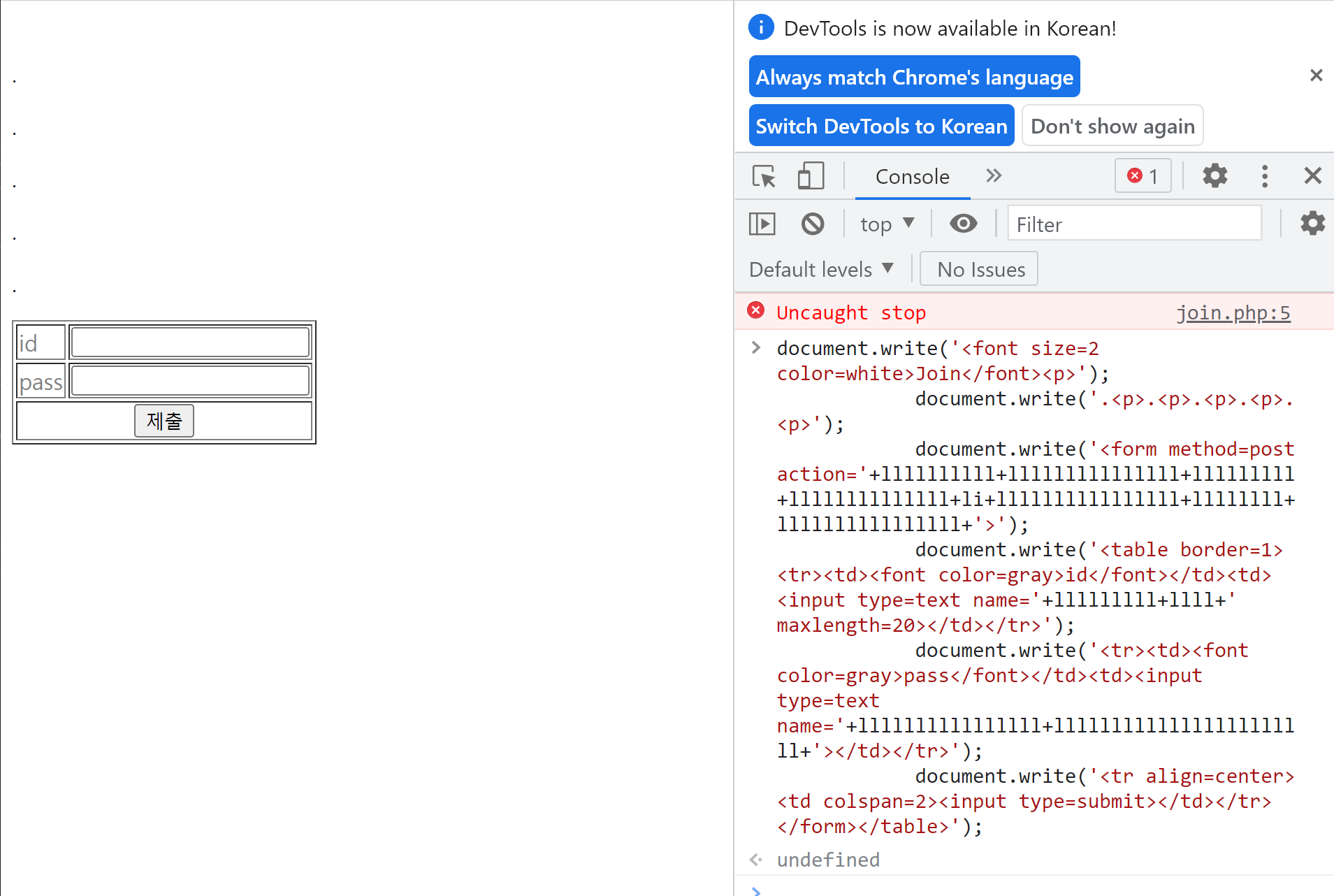 그러면 document.write만 따로 따서 콘솔에 실행해보자