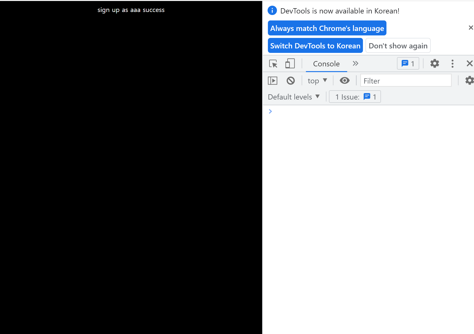 그러면 sign up as aaa success라며 회원가입에 성공 한 듯이 말한 것을 보아