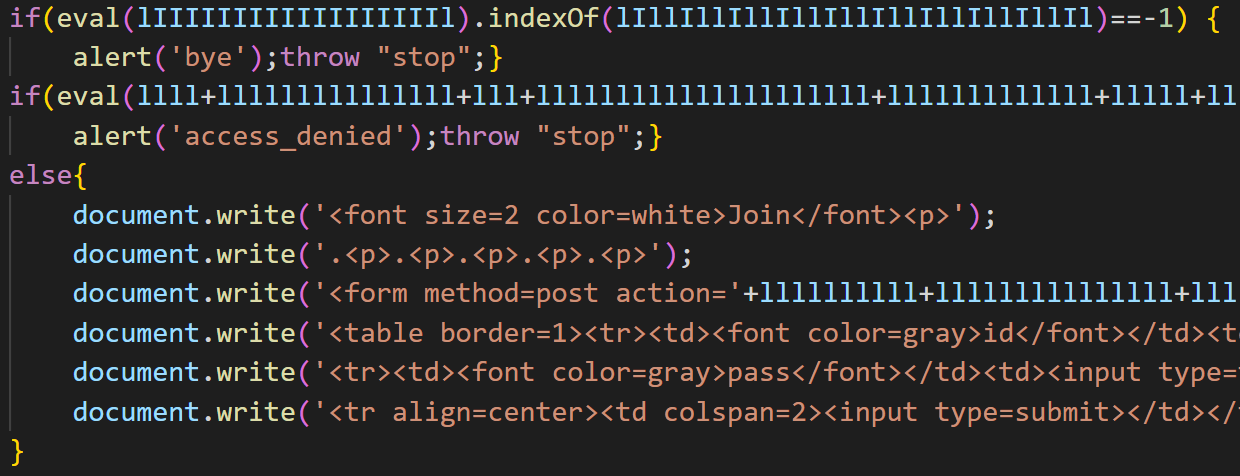 document.write('<tr><td><font color=gray>pass</font></td><td><input type=text name='+llllllllllllllll+lllllllllllllllllllllll+'></td></tr>');