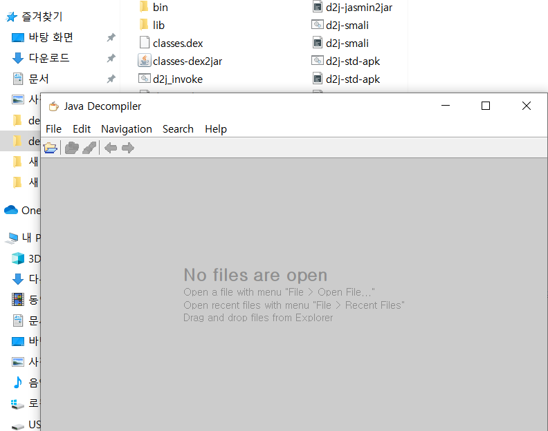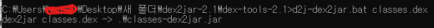 압축을 해제했으면 classes.dex라는 dex형식의 파일이 나온다 그 파일을 dex2jar를 압축 해제한