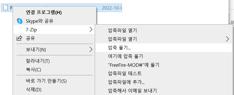이때 apk를 윈도우 에선 zip파일로 인식하지 않는다 7-Zip를 다운 받아 압축을 해제하자