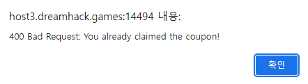 쿠폰을 재발급이나 재사용이 불가능 하다 또한 쿠폰을 발급 받은지 45초가 지나면 사용이 불가하다