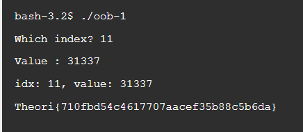 아래와 같은 코드가 있을때 idx를 입력받은 코드에 10 이상과 0 미만의 idx를 처리하는 코드가 없으므로 OOB가 발생한다
