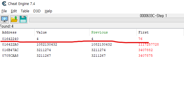 If you click on the "Next Scan", Cheat Engine will search for decreased data among the found data.